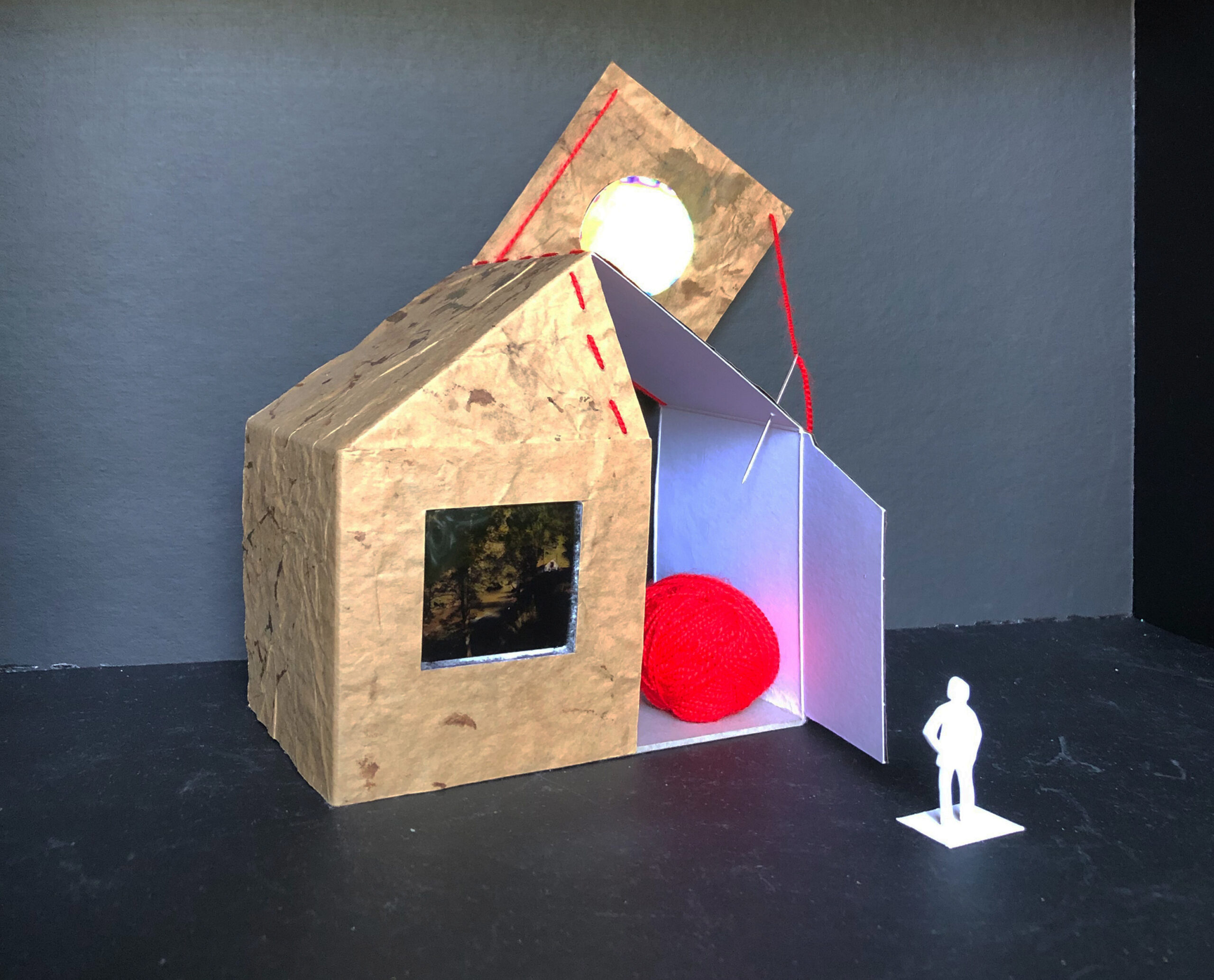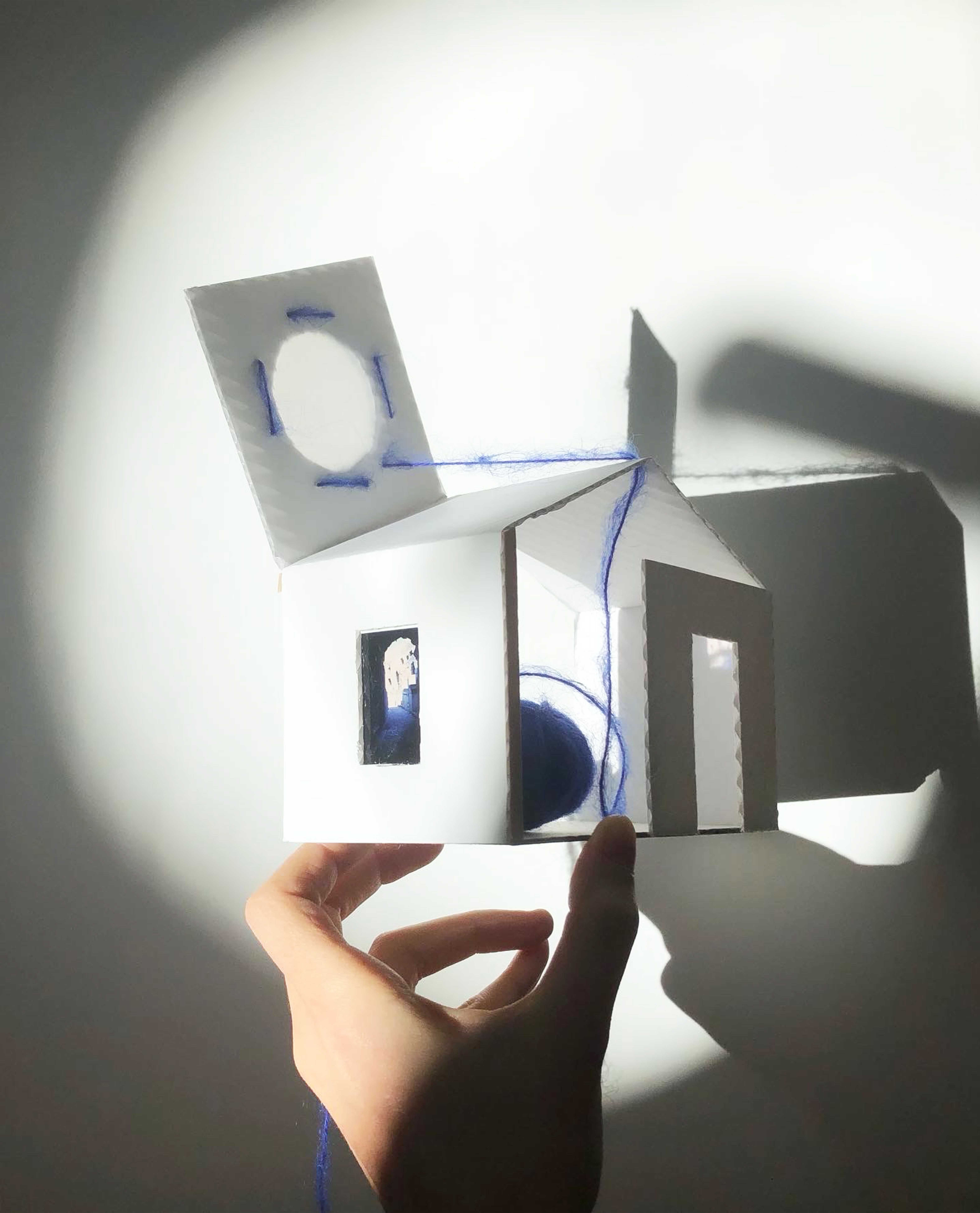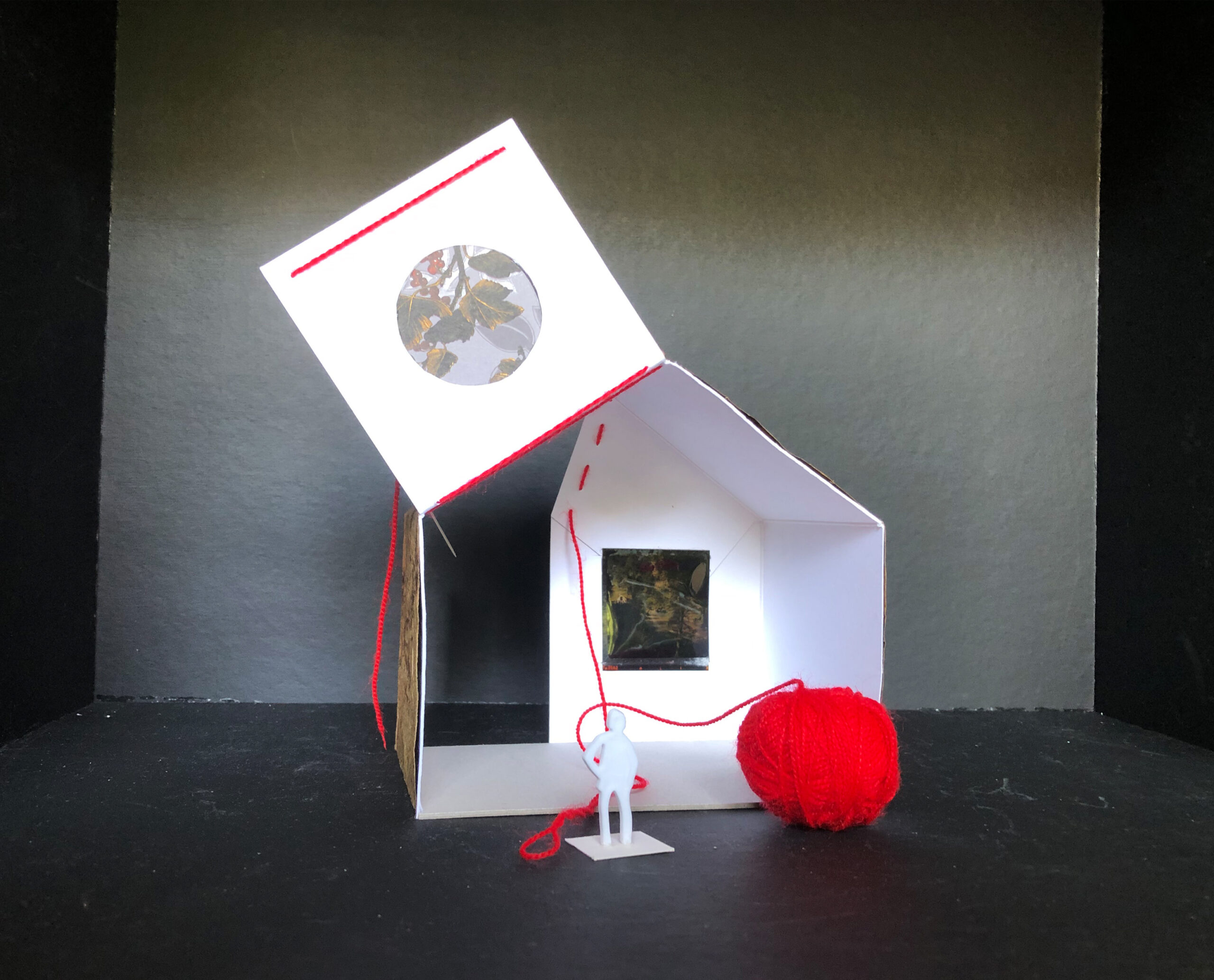 Ces maquettes ont été conçues à partir de matériaux de récupération, elles traduisent une exploration sensible de l’idée du ‘chez-soi’ telle qu’elle a été profondément transformée durant la période de confinement. À travers ces formes miniatures, j’ai voulu capturer les fragments d’un imaginaire né de l’isolement, où l’espace domestique devient à la fois refuge, frontière et monde intérieur.